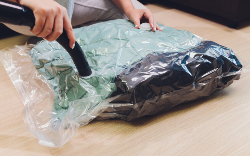 Jedan od najefikasnijih načina za uštedu prostora su vakuumske vreće. One omogućavaju kompresiranje odjeće, čime zauzimaju puno manje prostora. Ovo je posebno korisno ako imate ograničen prostor za skladištenje. Odjeću koja ostaje s vama i sljedeće ljeto jednostavno stavite u vreće i uz pomoć usisavača isišite zrak iz vreće. Roba će tako ostati zaštićena od vanjskih utjecaja, vlage i mirisa koje bi mogla pokupiti u skladišnom prostoru ili ormaru. Sljedećeg ljeta kada otvorite vreću malo ćete se mučiti s glačanjem, ali roba će biti svježa i mirisna i spremna za nošenje.